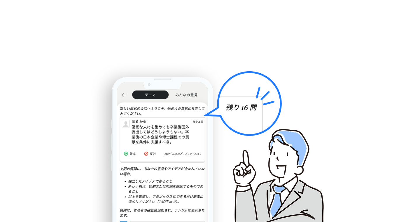 新たな視点を投稿して、みんなの賛成を得られるか試してみましょう!